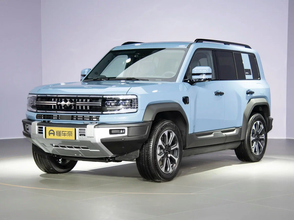 Внедорожник китайского производства ярко выделяется угловатым кузовом с брутальным передком и узкой оптикой. У него крупные дверные ручки и огромные боковые зеркала, обеспечивающие максимальный обзор.